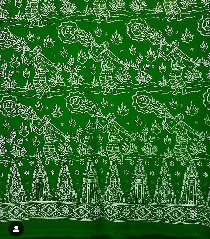 ” Yang jadi best seller tuh motif Gunung Krakatau, Gunung Krakatau aja ada tiga macam, gunung Krakatau bulat, gunung Krakatau yang biasa pokoknya ada gunung Krakatau, kemudian ada sate bebek, ada sate bandeng, ada rampak bedug ada debus, dan ada pabrik kimia,” terangnya.